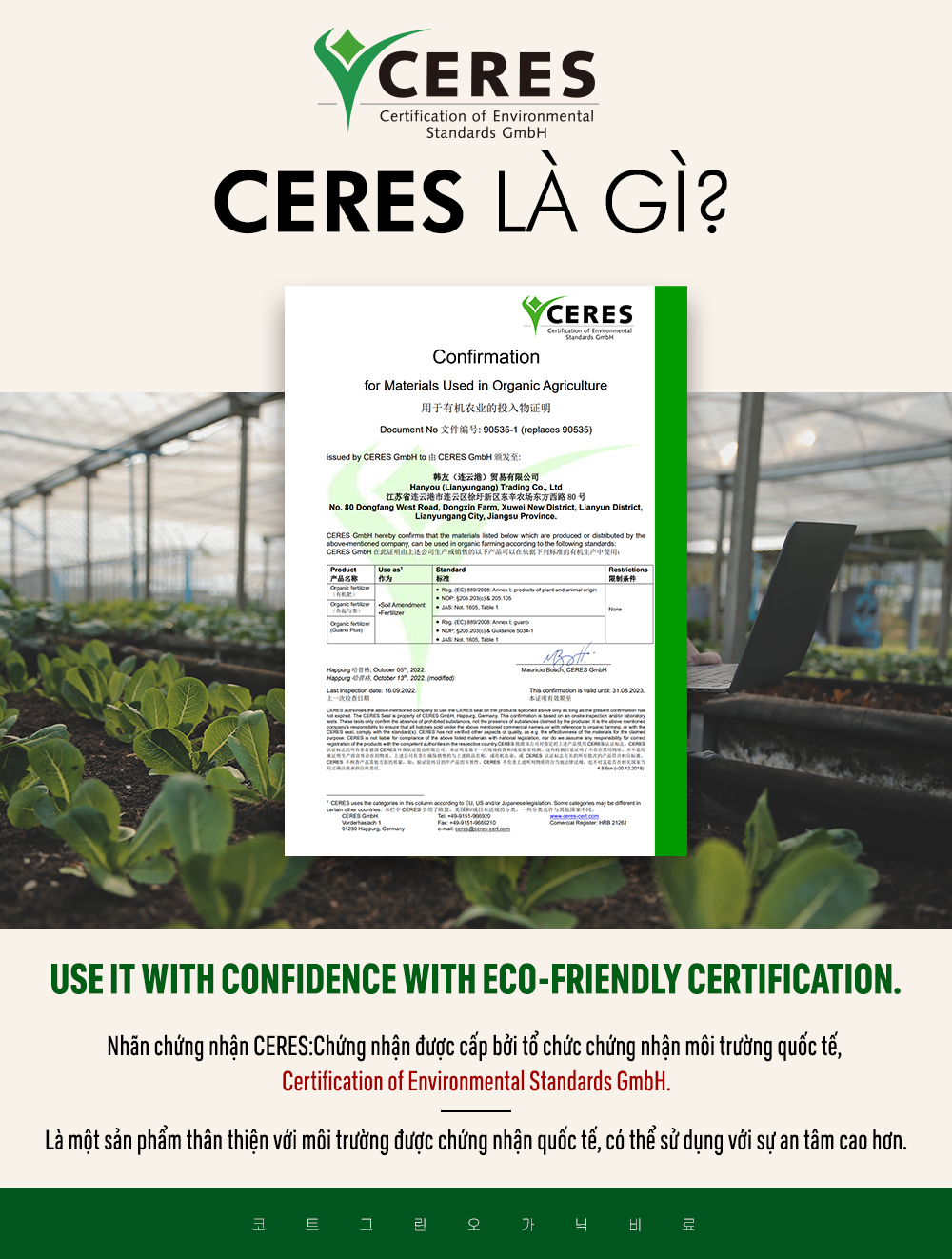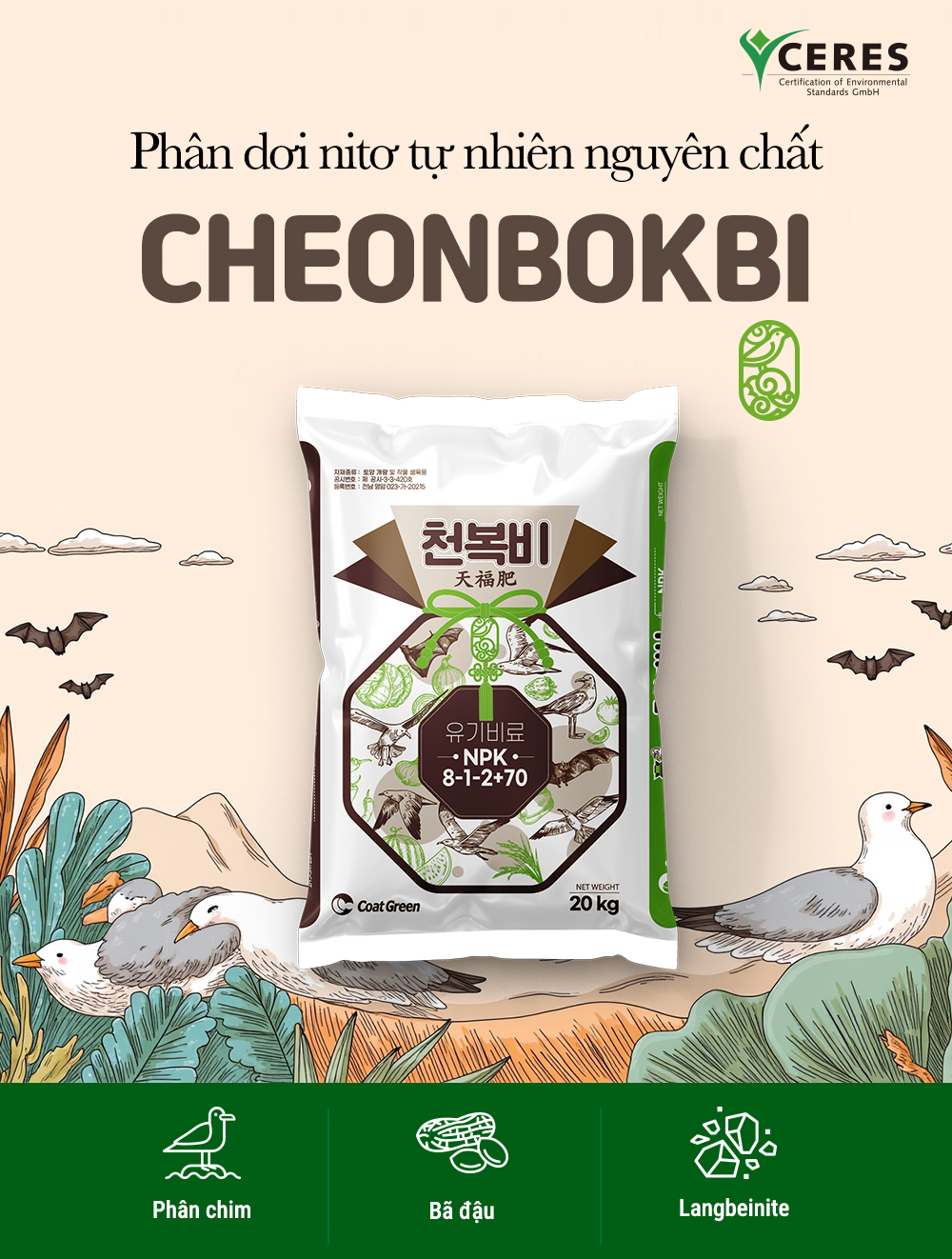 Nguyên liệu thô: Phân chim 58.5%, Bã đậu 35%, Langbeinite 6.5%